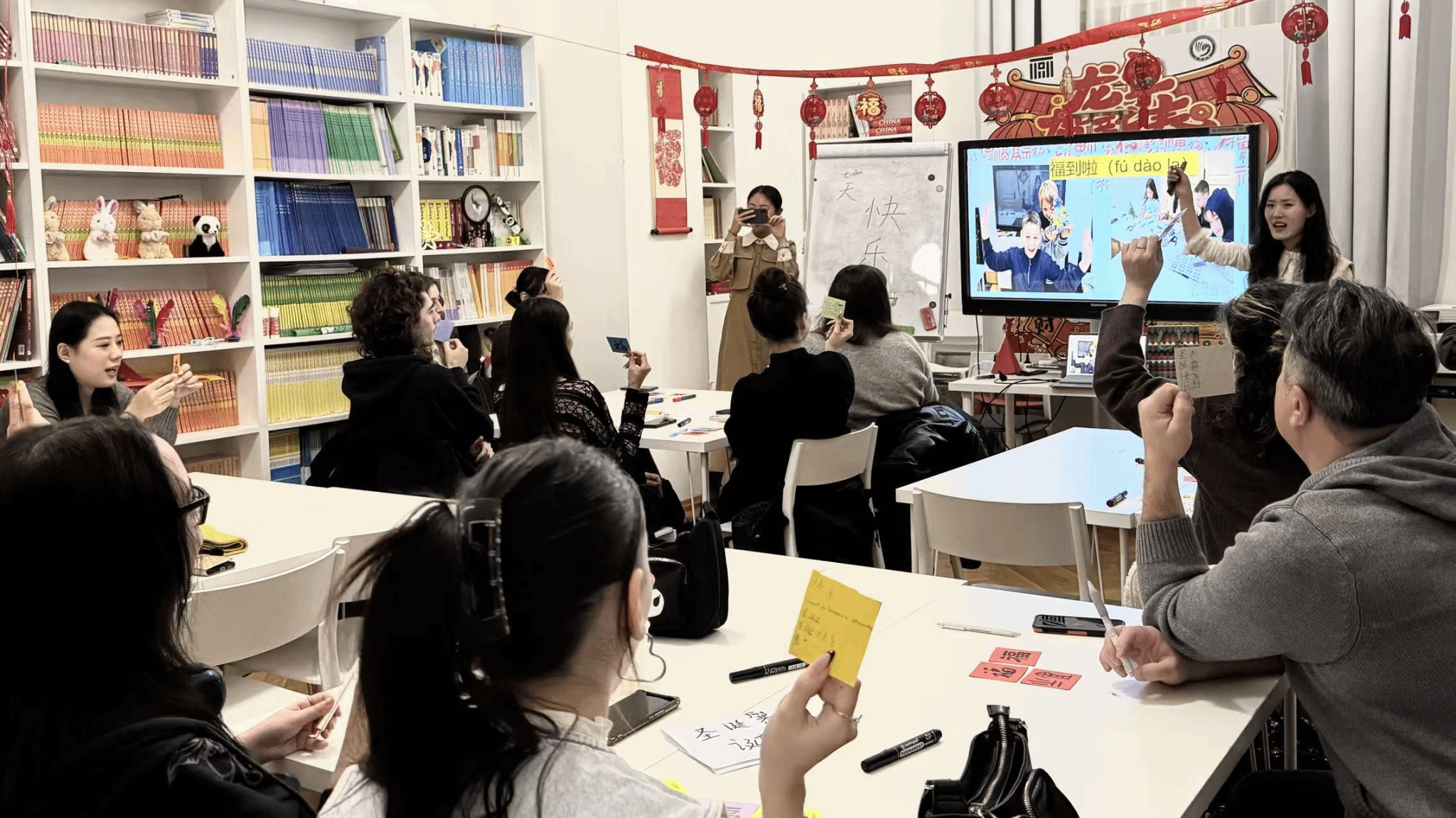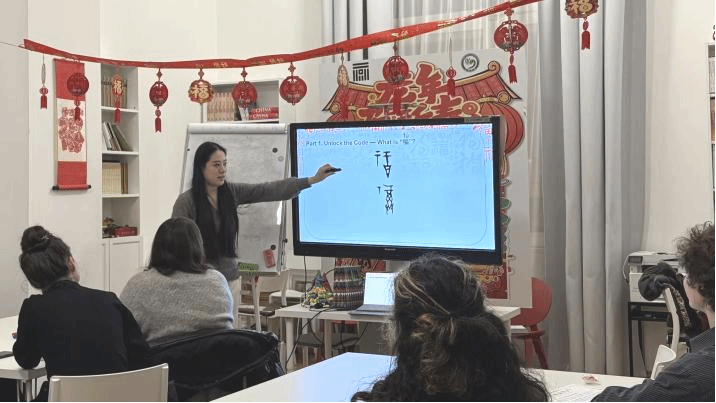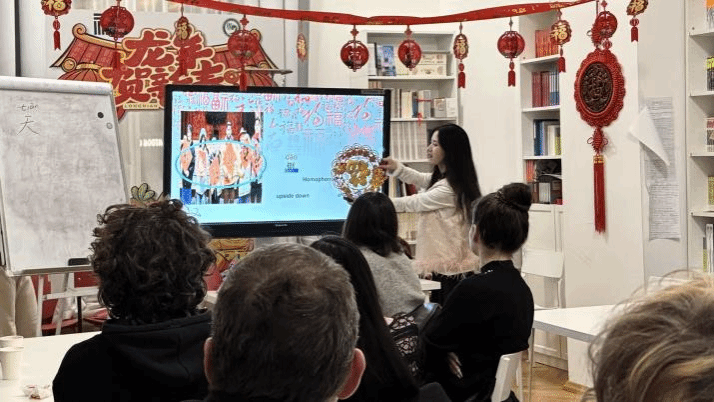 罗马尼亚时间12月17日下午17:00,时值圣诞佳节将至、新岁启航之际,我校布拉索夫特来西瓦尼亚大学孔子学院成功举办“解锁‘福’文化”主题体验活动。孔子学院外方院长科琳娜·西尔维娅·米库(Corina Silvia Micu)、中方院长王冰及五位中文教师魏颖晖、代雨欣、赵淼鑫、张睿、王一茗悉数到场,与当地学子共话汉字魅力。活动旨在将中华传统文化中蕴含的“福气”与“好运”跨越山海,传递给每一位学生。